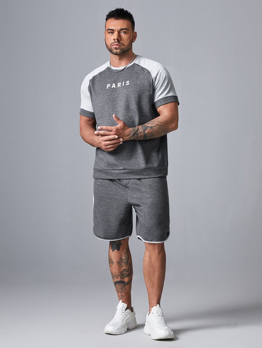 Manfinity Men Letter Graphic Raglan Sleeve Top & Track Shorts Set