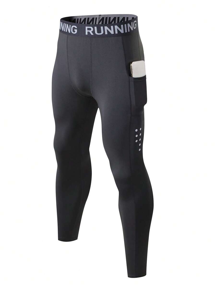 Fitness Men Letter Graphic Sport Tights With Phone Pocket