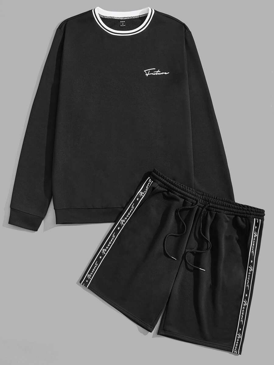 Manfinity Men Letter Graphic Striped Trim Sweatshirt & Drawstring Waist Shorts