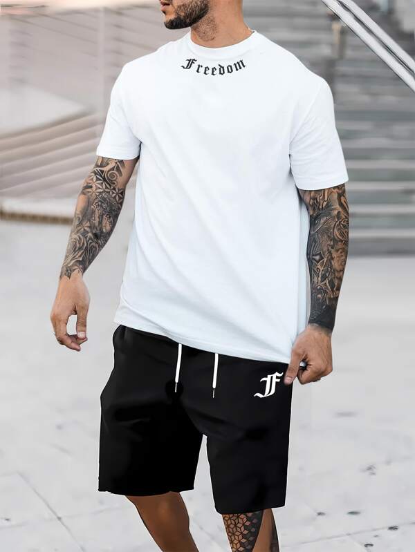 Manfinity Homme Men Letter Graphic Tee & Drawstring Waist Shorts