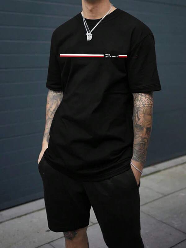 Manfinity Homme Men Letter Graphic Tee & Drawstring Waist Shorts