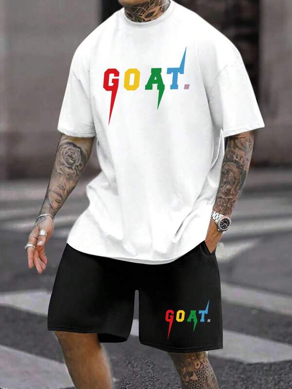 Manfinity Men Letter Graphic Tee & Drawstring Waist Shorts