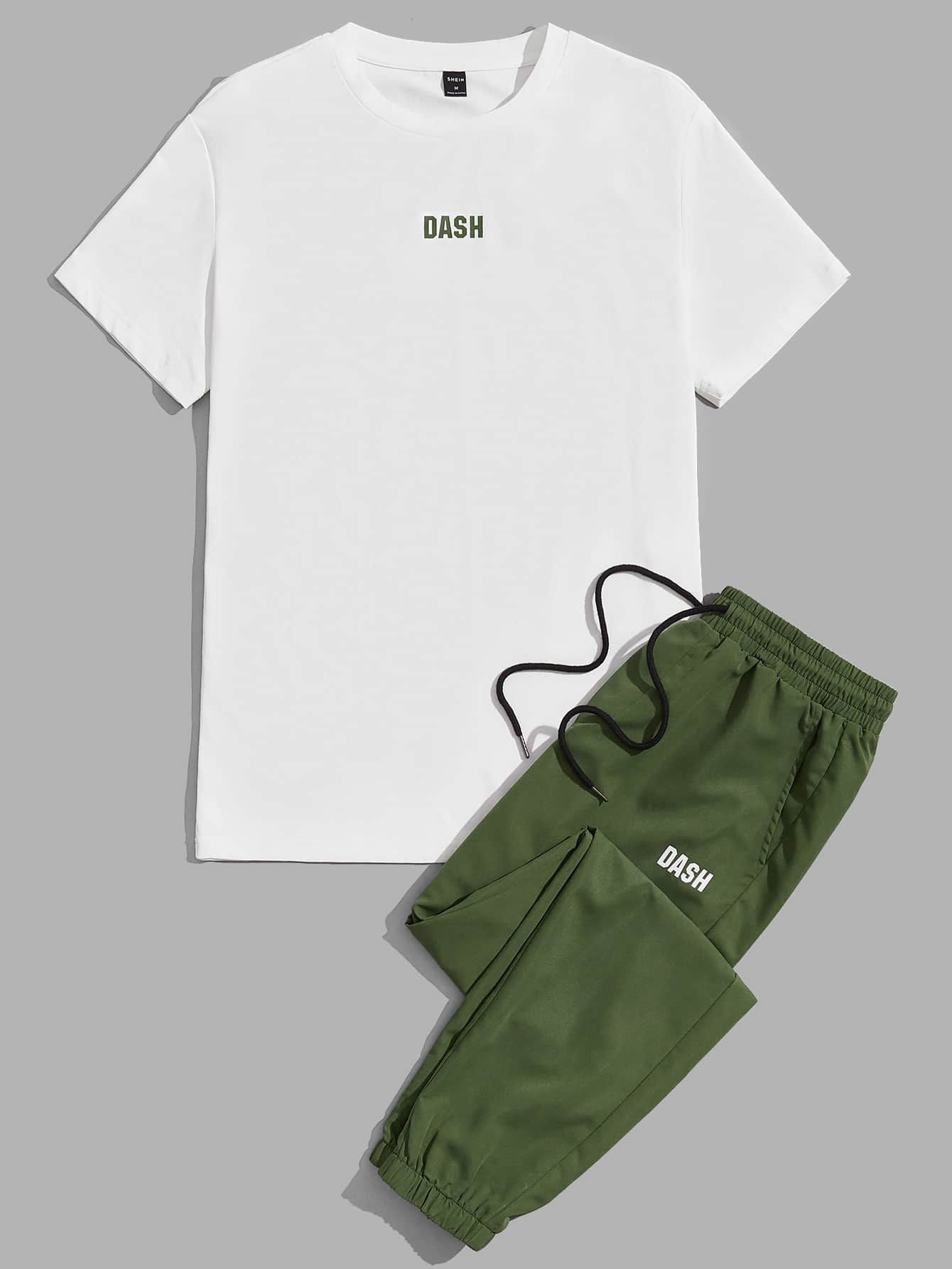 Manfinity Men Letter Graphic Tee & Patched Detail Drawstring Waist Pants