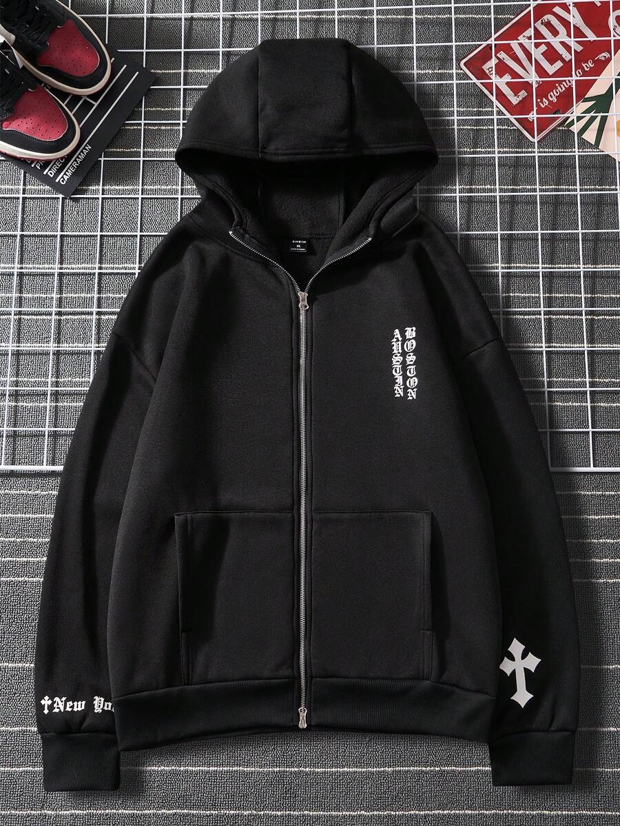 Manfinity Hypemode Men Letter Graphic Zip Up Drop Shoulder Hoodie