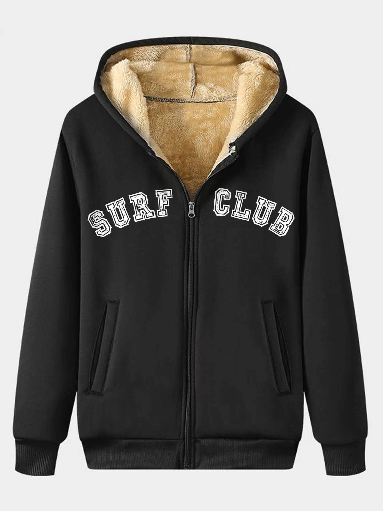 Manfinity Men Letter Graphic Zip Up Thermal Lined Hoodie