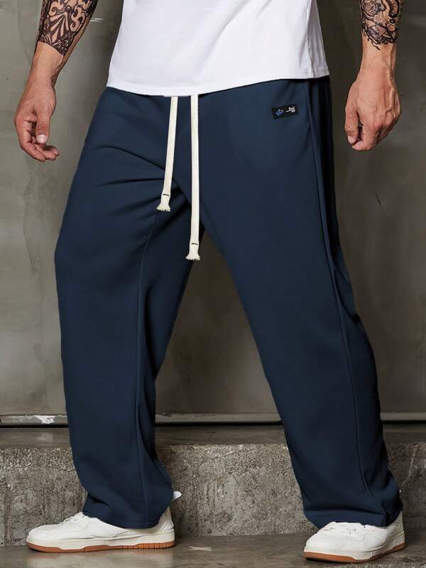 Manfinity Homme Men Letter Patched Detail Drawstring Waist Straight Leg Pants