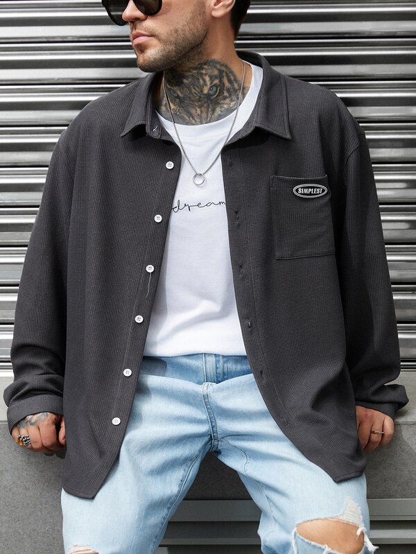 Manfinity Men Letter Patched Detail Pocket Front Shirt