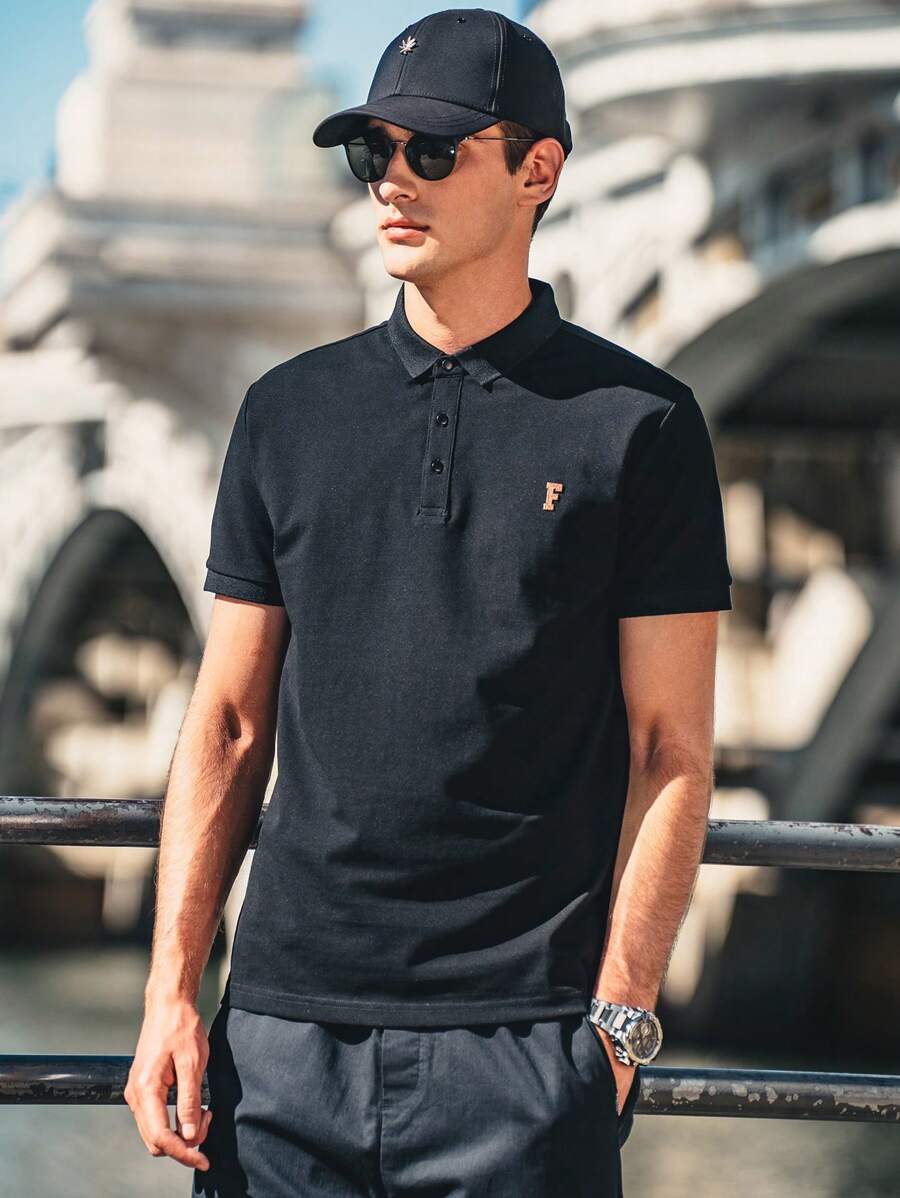 Men Letter Patched Detail Polo Shirt