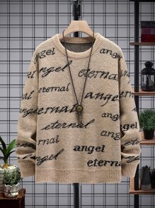 Manfinity Men Letter Pattern Drop Shoulder Sweater Without Necklace