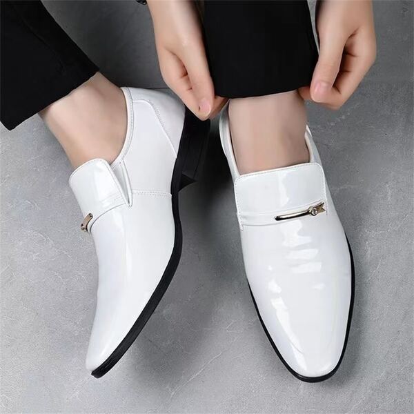 Men Metal Decor Dress Loafers, Leisure White Dress Shoes