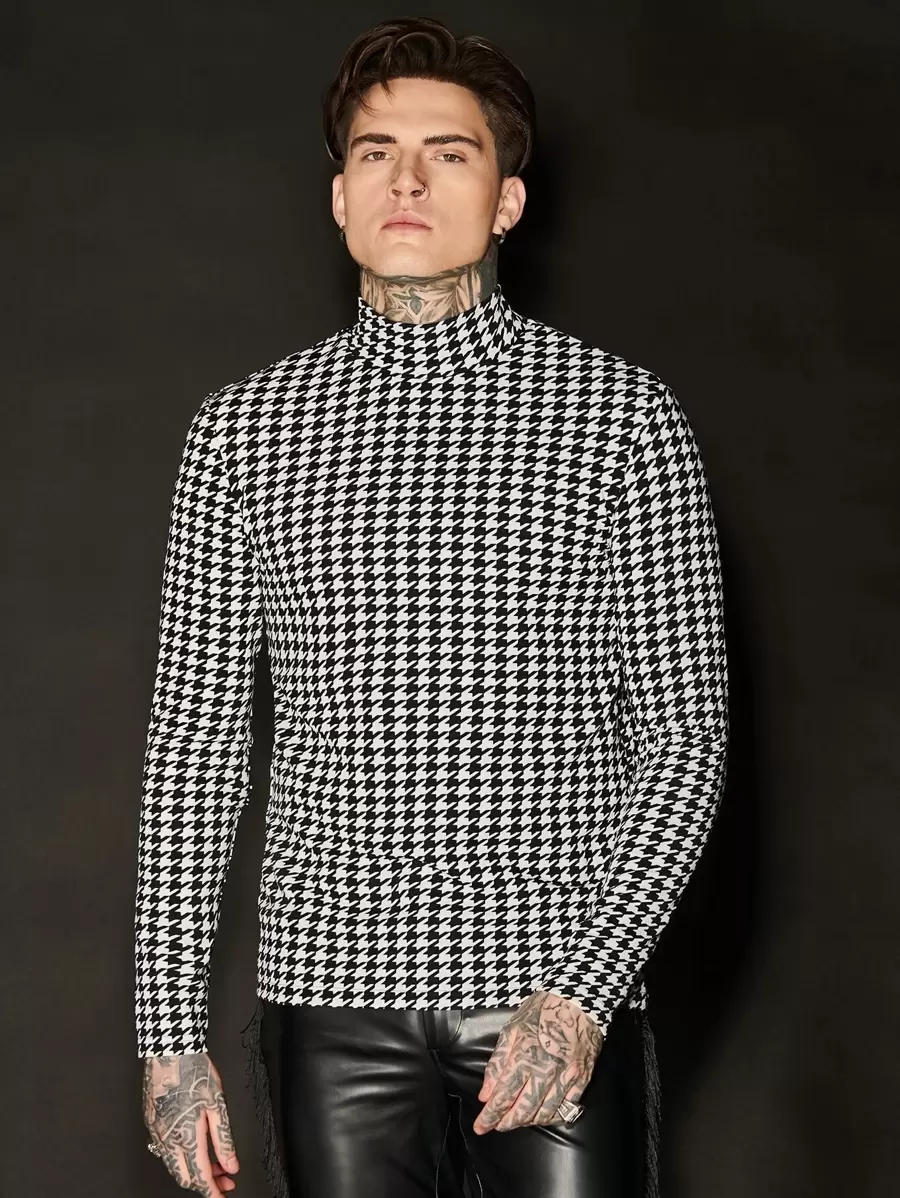Manfinity Homme Men Mock Neck Houndstooth Tee