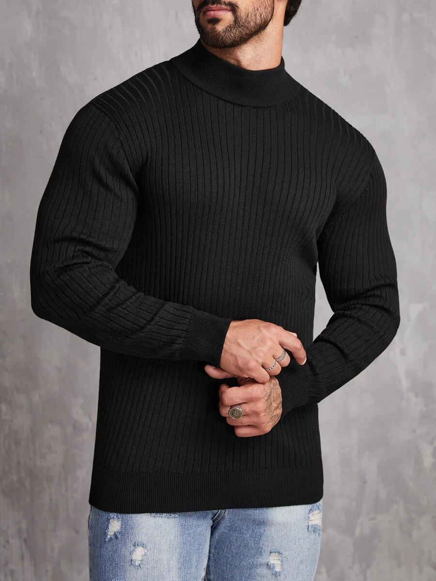 Manfinity Men Mock Neck Ribbed Knit Sweater