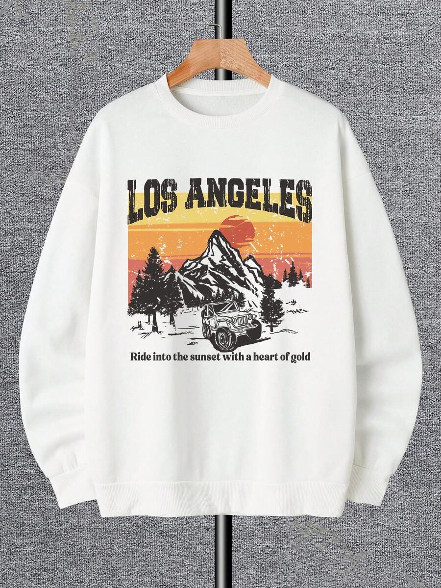 Men Mountain & Slogan Graphic Thermal Lined Sweatshirt
