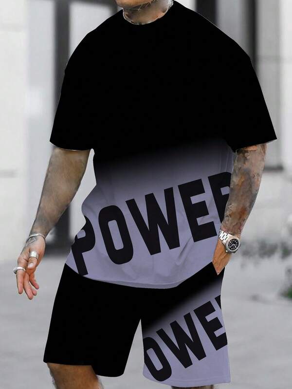 Manfinity EMRG Men Ombre Letter Graphic Tee & Shorts