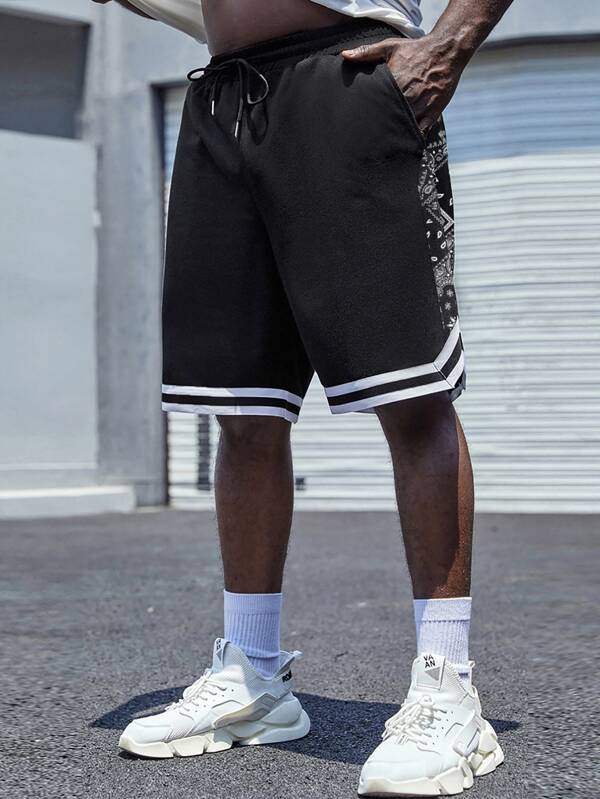Manfinity Men Paisley Print Striped Trim Drawstring Waist Shorts