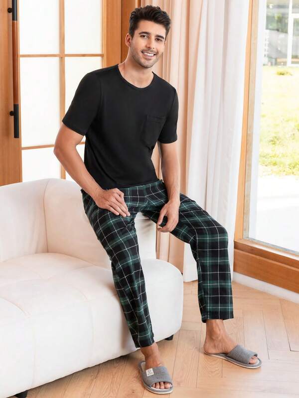 Men Plaid Print PJ Set