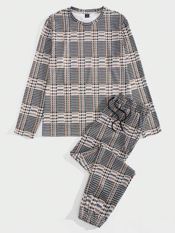 Manfinity Homme Men Plaid Print Tee & Drawstring Waist Sweatpants