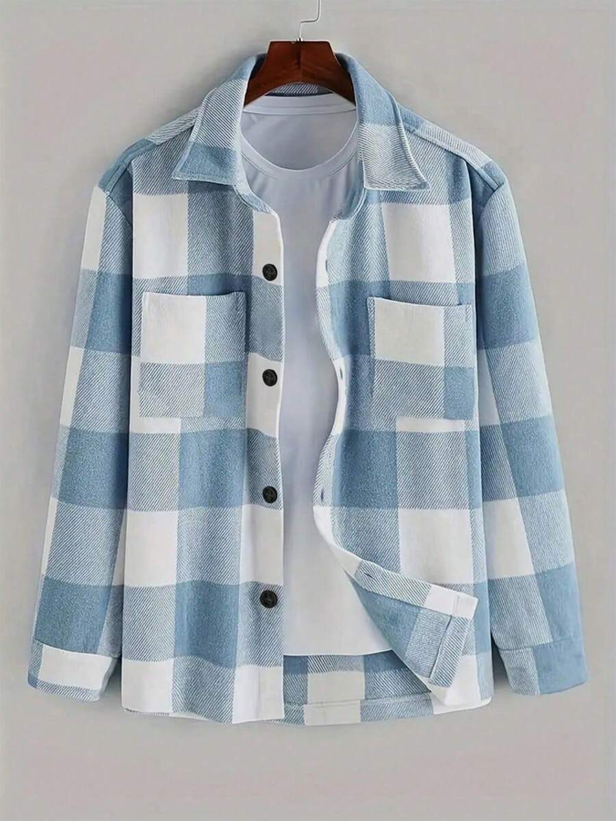 Manfinity Homme Men Plus Buffalo Plaid Dual Pocket Shacket Without Tee