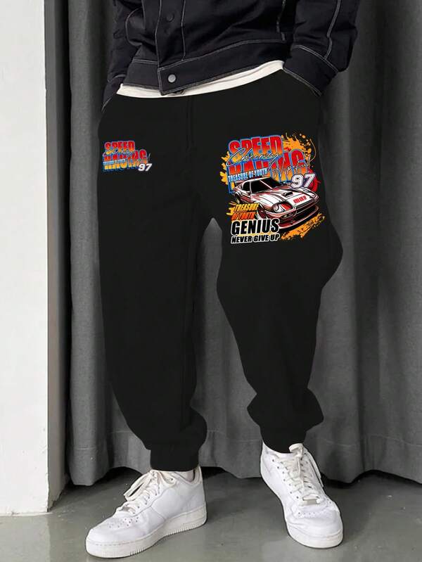 Manfinity EMRG Men Plus Car & Slogan Graphic Drawstring Waist Sweatpants