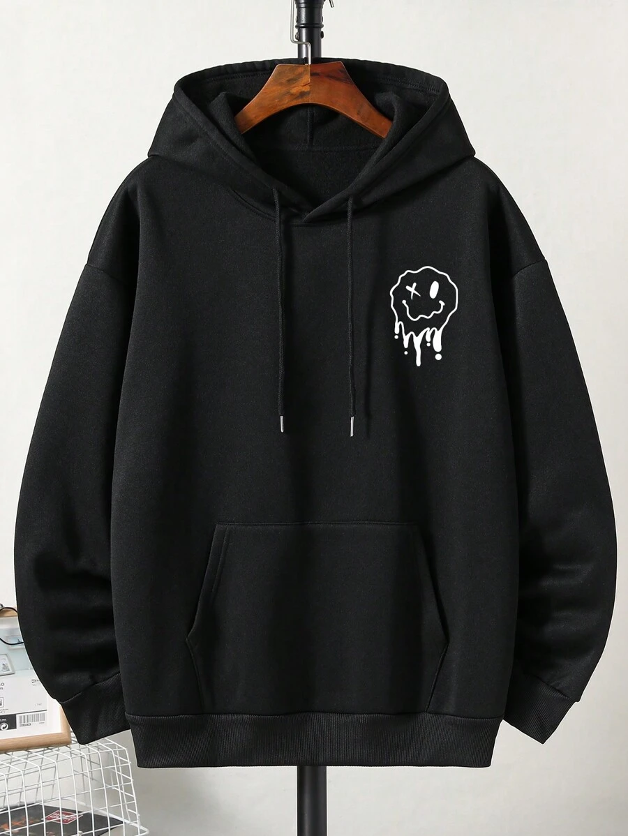 Men Plus Expression Print Kangaroo Pocket Drawstring Thermal Lined Hoodie