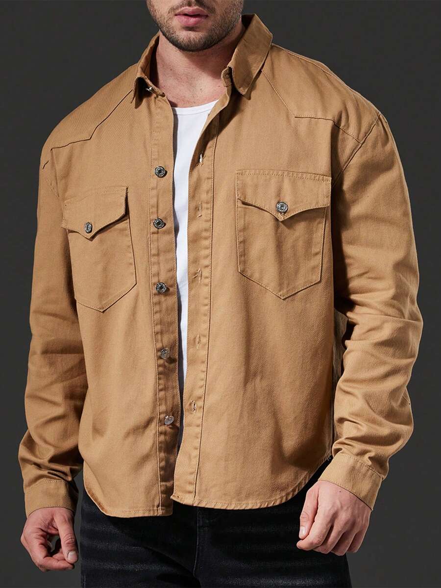 Manfinity Men Plus Flap Pocket Denim Shirt Without Tee