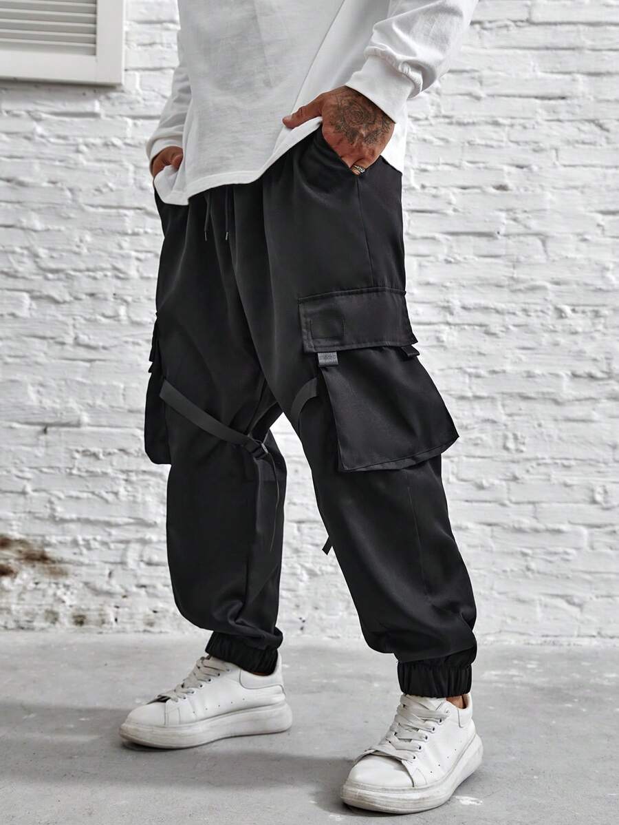 Manfinity EMRG Men Plus Flap Pocket Side Drawstring Waist Cargo Pants