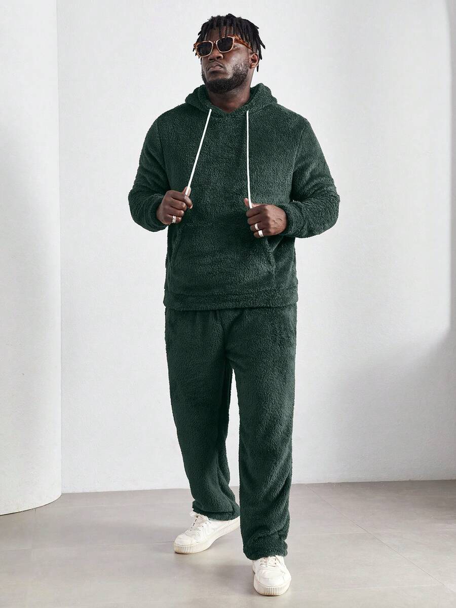 Manfinity Hypemode Men Plus Kangaroo Pocket Drawstring Teddy Hoodie & Pants