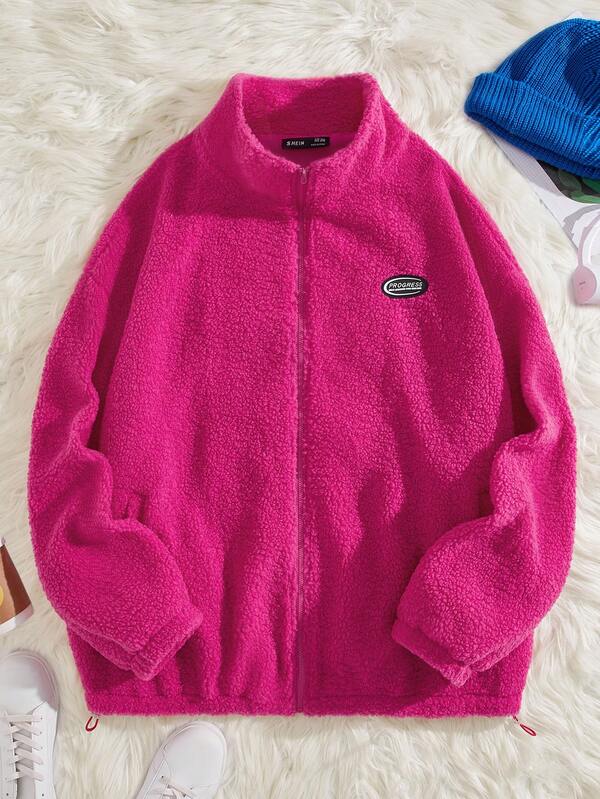 Manfinity Hypemode Men Plus Letter Patched Detail Drop Shoulder Zipper Teddy Jacket