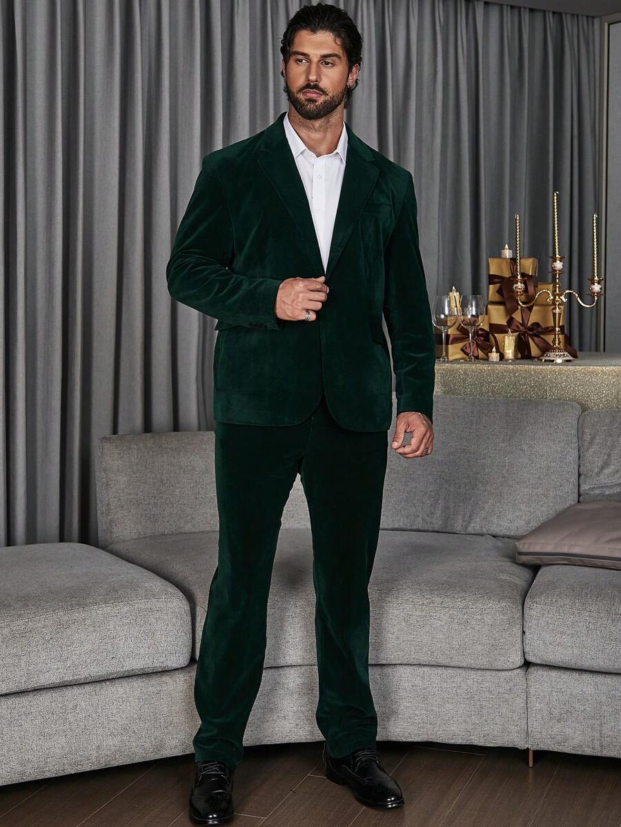 Manfinity Men Plus Single Button Velvet Blazer & Pants