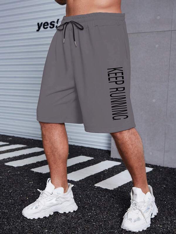 Manfinity Homme Men Plus Slogan Graphic Drawstring Waist Shorts