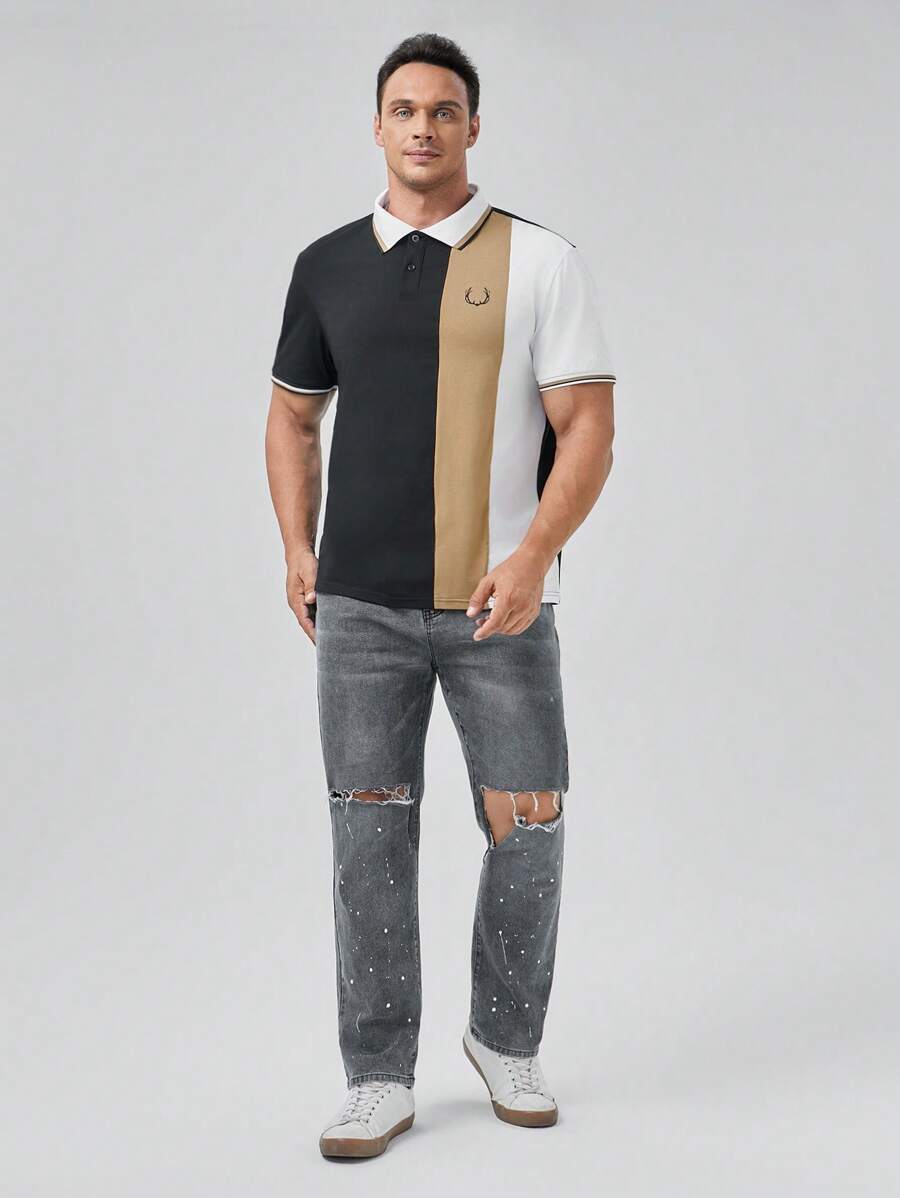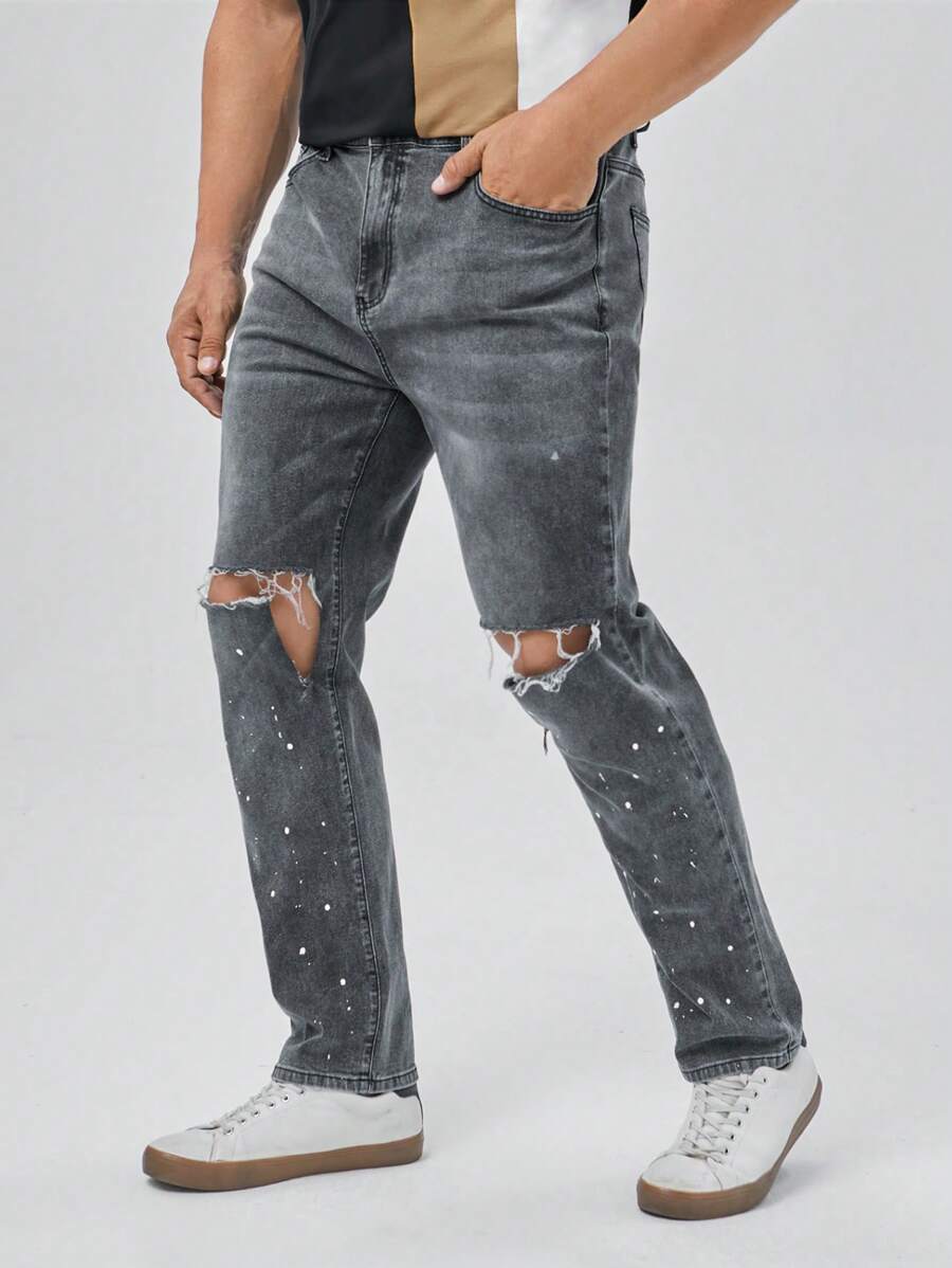 Manfinity LEGND Men Plus Splash Ink Print Ripped Straight Leg Jeans