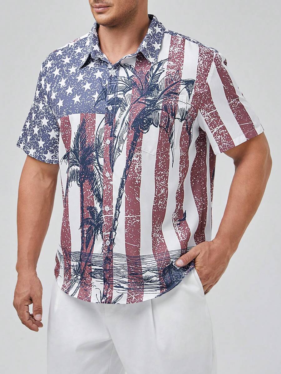Manfinity RSRT Men Plus Striped & Tropical Print Shirt