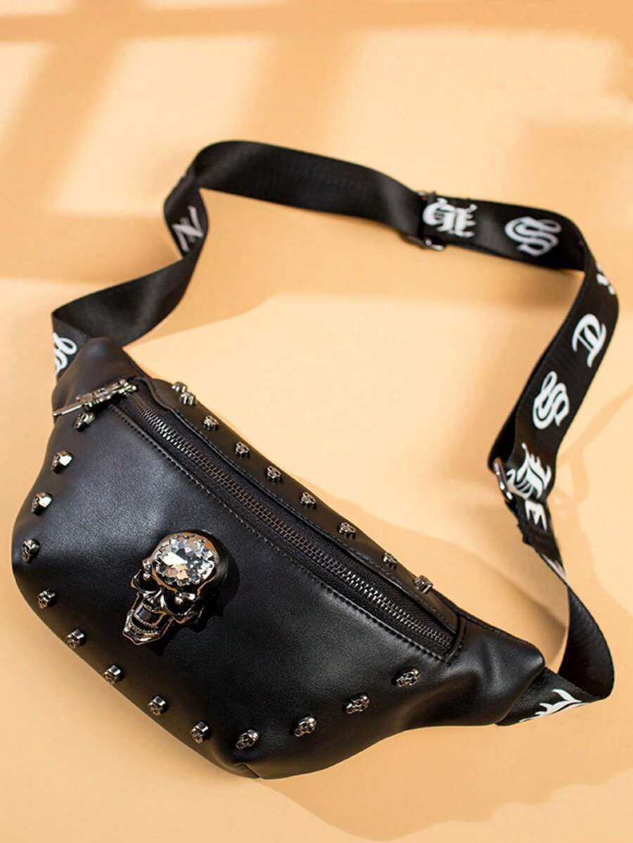 Men Punk Waist Bag Belt Bag Fashion Skull Pattern Fanny Pack Hip Packs Multifunction Outdoor Male Waist Pack Crossbody Bags Sling Bag Chest Bag Bum Bag Waterproof Valentines Gift For Men
