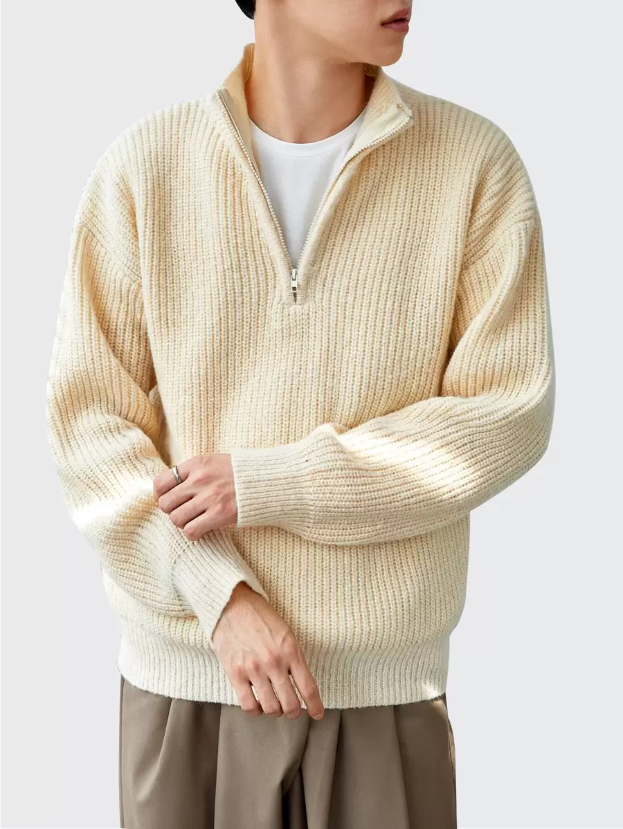 Manfinity Hypemode Men Quarter Zipper Drop Shoulder Sweater