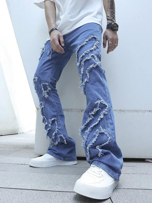 Manfinity EMRG Men Raw Trim Flare Leg Jeans