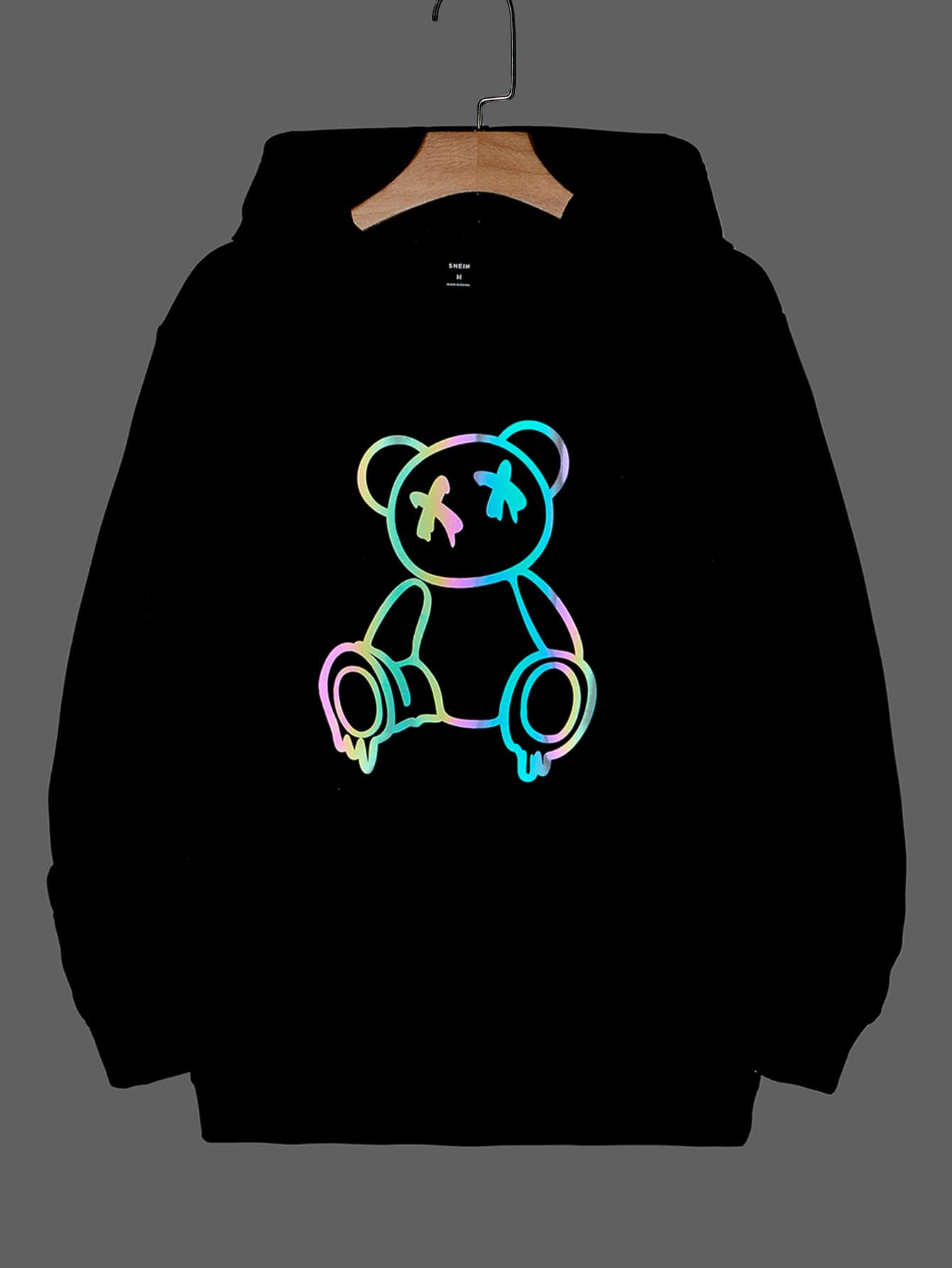Manfinity Men Reflective Bear Print Drawstring Hoodie