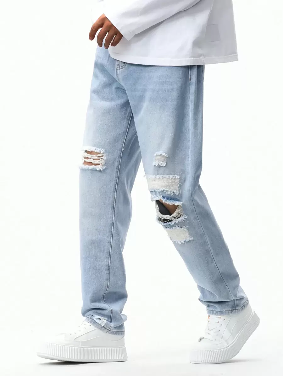 Manfinity EMRG Men Ripped Frayed Straight Leg Jeans