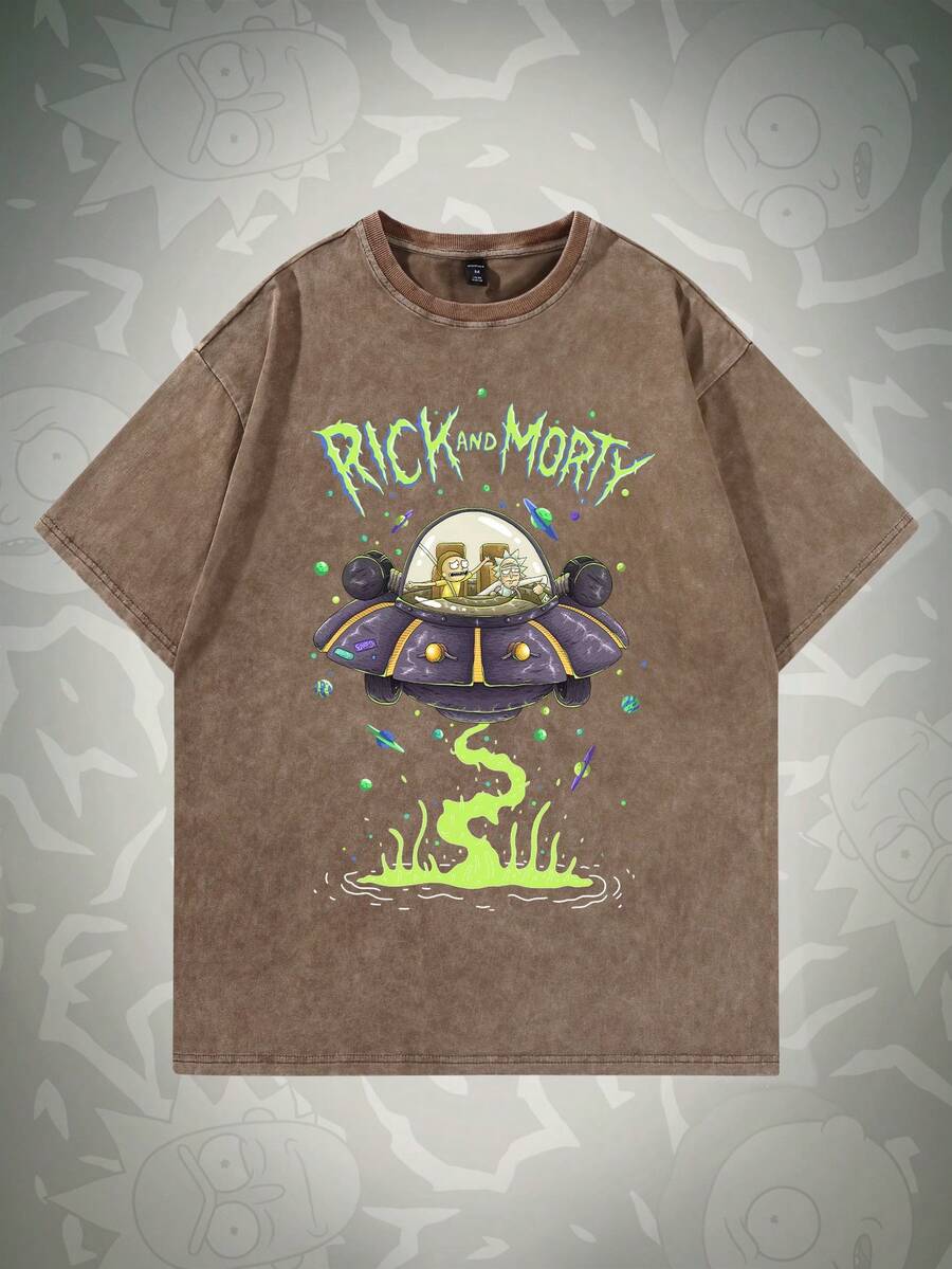 Rick and Morty | ROMWE Men Short Sleeve T-Shirt With Cartoon Pattern