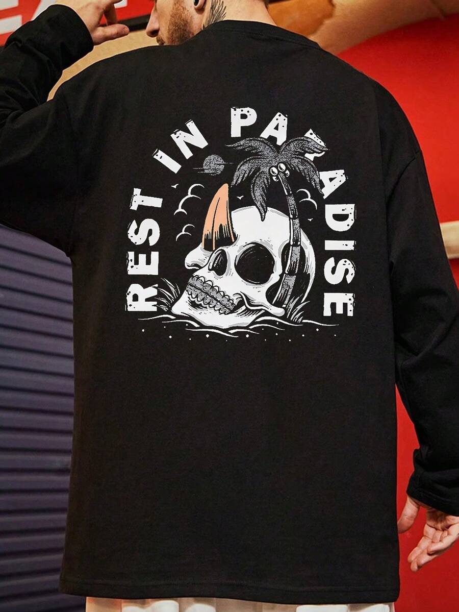 Men Skull & Letter Graphic Drop Shoulder Tee