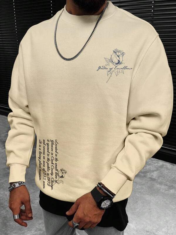 Manfinity Homme Men Slogan & Floral Print Thermal Lined Sweatshirt