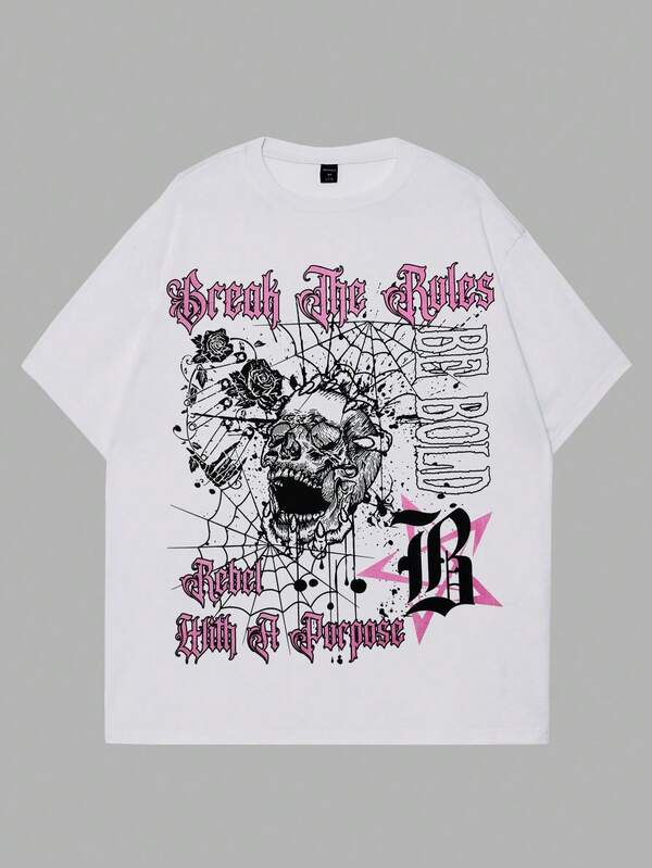 ROMWE Goth Men Slogan & Skull Graphic Tee