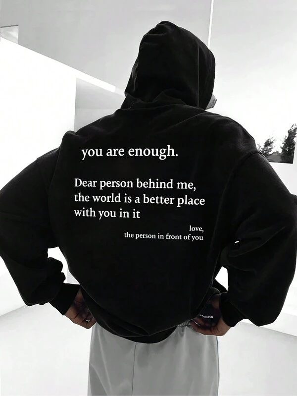 Manfinity Hypemode Men Slogan Graphic Drop Shoulder Drawstring Hoodie