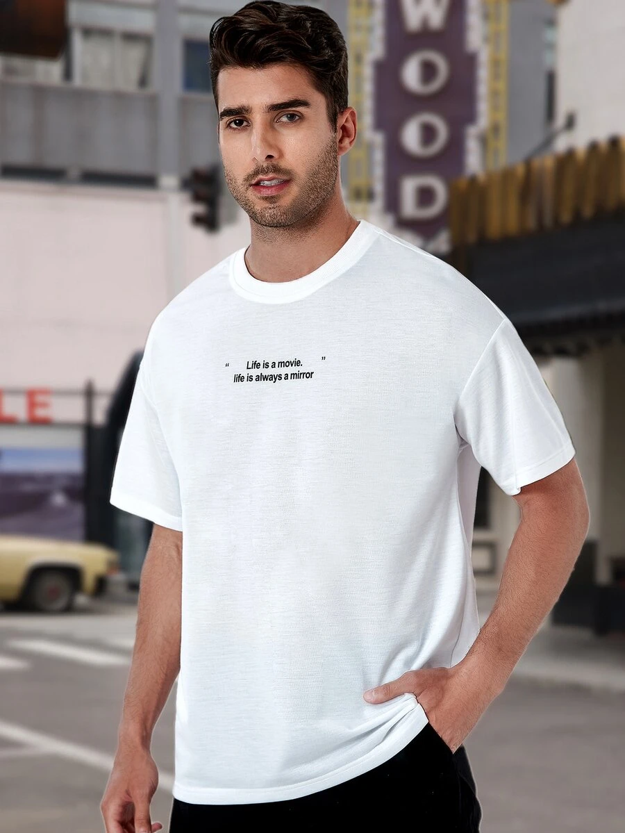 Manfinity Men Slogan Graphic Drop Shoulder Tee