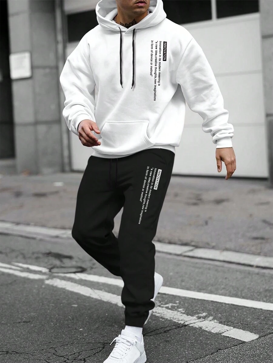 Manfinity Homme Men Slogan Graphic Kangaroo Pocket Drawstring Hoodie & Sweatpants
