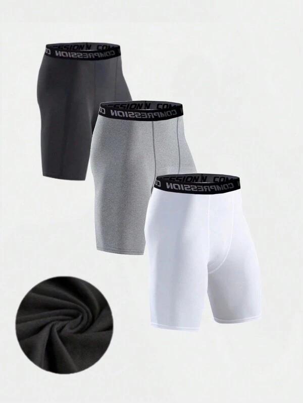 3pcs/Set Men's Compression Shorts, Basketball Training Half Tights, Running Exercise Fitness Pants