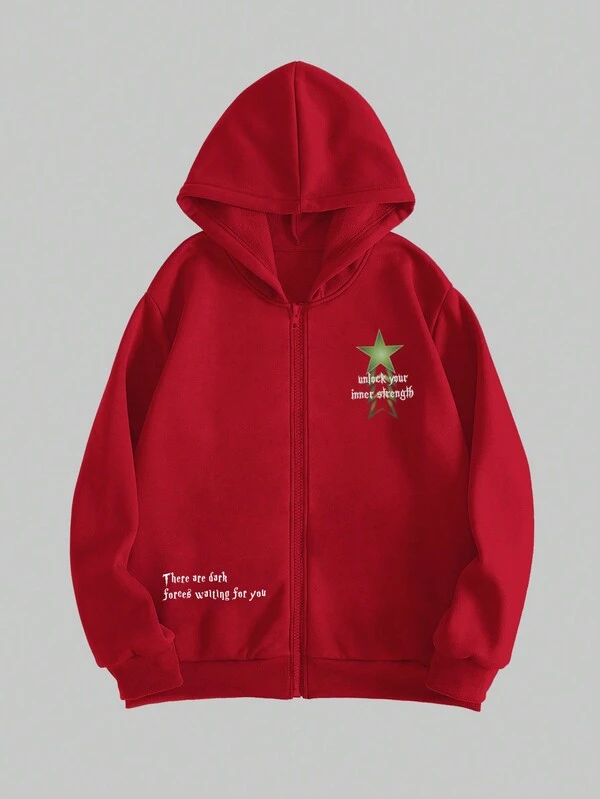ROMWE Goth Men Star & Slogan Printed Hoodie With Fleece Lining