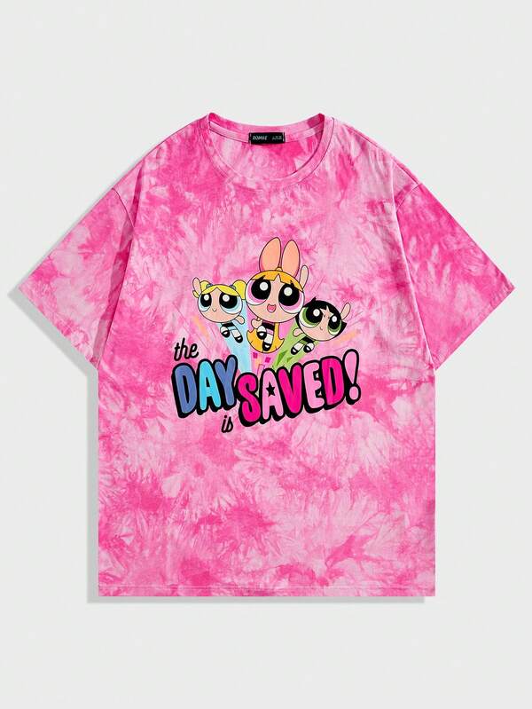 The Powerpuff Girls | ROMWE Men Tie Dye Cartoon & Letter Graphic Tee