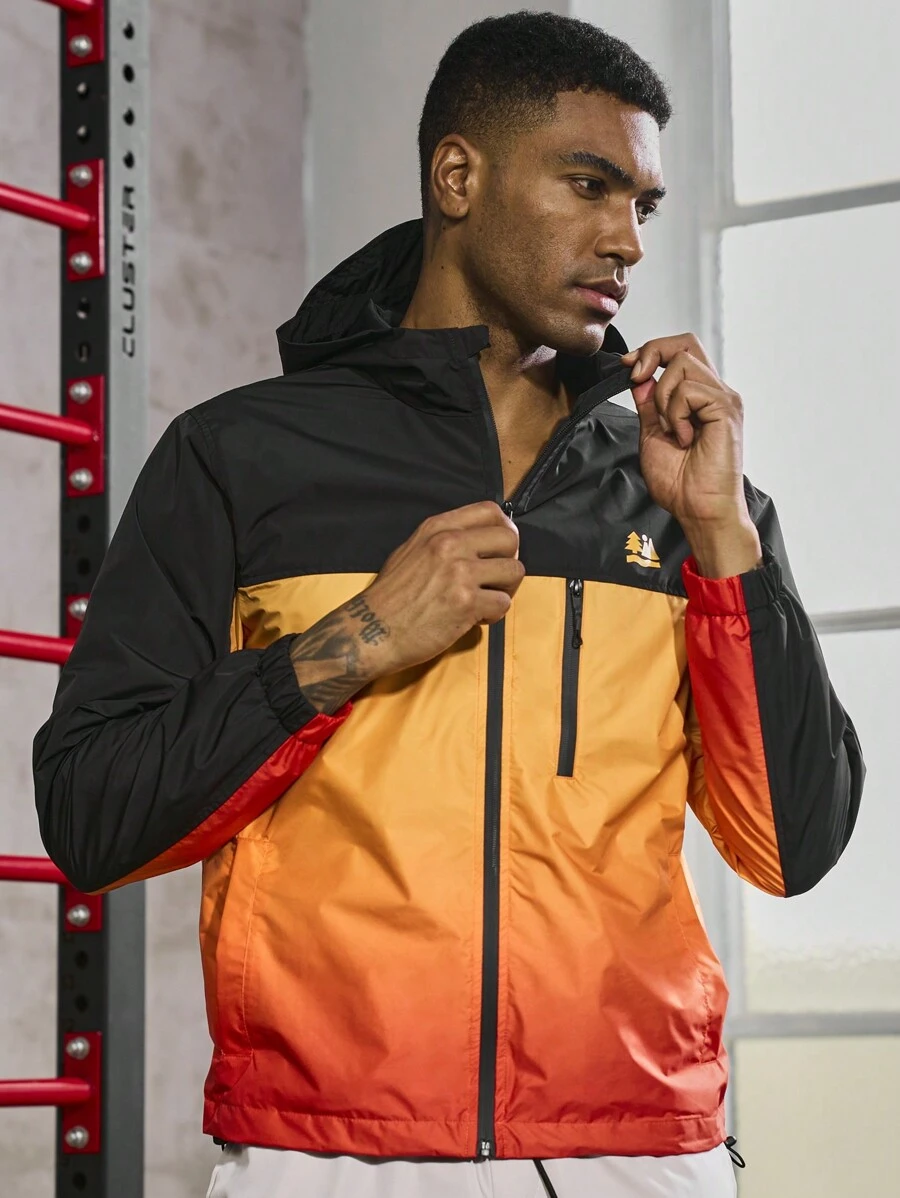 Men Two Tone Zip Up Hooded Sports Windbreaker Jacket