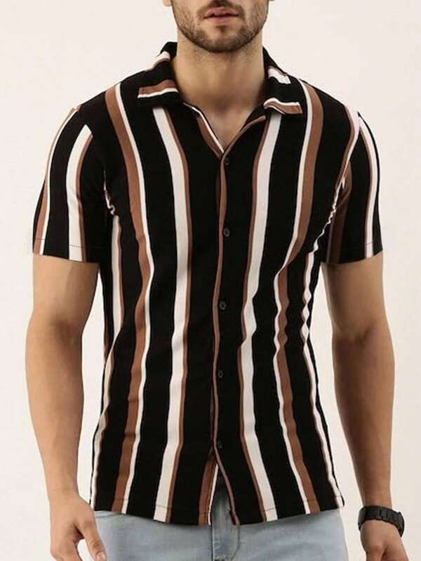 Men Vertical Striped Button Up Shirt