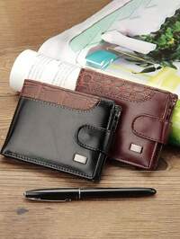 1pc Men's Wallet, Black, Coffee, Brown, Short Wallet, Wallet, Young Men's Simple Fashion Wallet, Fashion Multi-Card Wallet, Litchi Grain Horizontal Wallet, Large Capacity Slim Tri-Fold Soft Leather Wallet, PU Leather Zipper Snap Wallet, New Coin Purse Business Soft Leather Wallet #4 Bestseller
